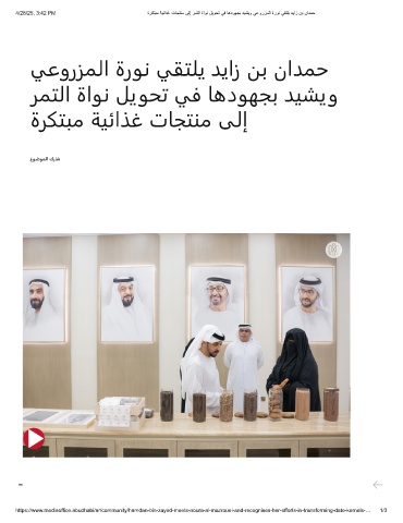 https://www.mediaoffice.abudhabi/ar/community/hamdan-bin-zayed-meets-noura-al-mazrouei-and-recognises-her-efforts-in-transforming-date-kernels-… 1/3