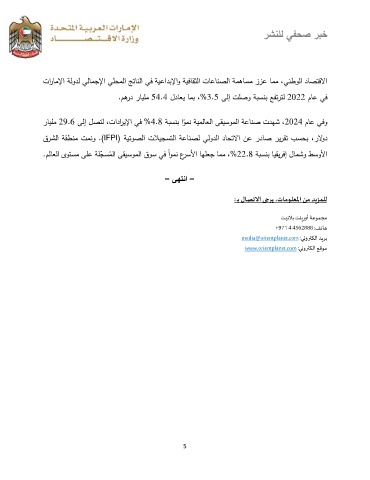 رﺎﯿﻠﻤ 29.6 ﻰﻟإ لﺼﺘﻟ ،تادارﯿﻹا ﻲﻓ % 4.8 ﺔﺒﺴﻨﺒ اوﻤﻨ ﺔﯿﻤﻟﺎﻌﻟا ﻰﻘﯿﺴوﻤﻟا ﺔﻋﺎﻨﺼ تدﻬﺸ ، 2024 مﺎﻋ ﻲﻓ و