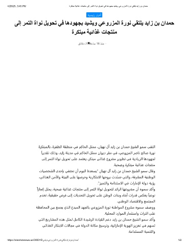 4/28/25, 3:45 PM ةرﻛﺗﺑﻣ ﺔﯾﺋاذﻏ تﺎﺟﺗﻧﻣ ﻰﻟإ رﻣﺗﻟا ةاوﻧ لﯾوﺣﺗ ﻲﻓ ﺎھدوﮭﺟﺑ دﯾﺷﯾو ﻲﻋورزﻣﻟا ةروﻧ ﻲﻘﺗﻠﯾ دﯾاز نﺑ نادﻣﺣ
