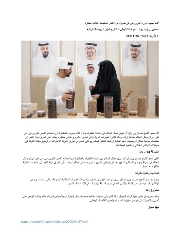ىلإ رمتلا ةاون ليوحت ىلع دمتعي ،ركتبم يئاذغ عورشم ريوطت يف ةيدايرلا اهدوهجل ًاريدقت كلذو ،دياز ةنيدمب مكاحلا لثمم ناويد رقم