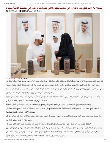 4/28/25, 3:47 PM تارﺎﻣﻹا رﺎﺑﺧأ ﺔﻛﺑﺷ - ةرﻛﺗﺑﻣ ﺔﯾﺋاذﻏ تﺎﺟﺗﻧﻣ ﻰﻟإ رﻣﺗﻟا ةاوﻧ لﯾوﺣﺗ ﻲﻓ ﺎھدوﮭﺟﺑ دﯾﺷﯾو ﻲﻋورزﻣﻟا ةروﻧ ﻲﻘﺗﻠﯾ دﯾاز نﺑ نادﻣﺣ