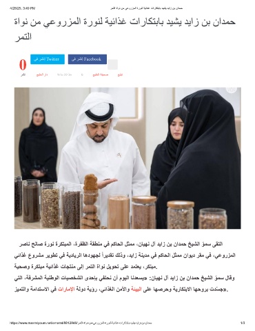 https://www.masralyoum.net/emarat/8812849/رﻣﺗﻟا-ةاوﻧ-نﻣ-ﻲﻋورزﻣﻟا-ةروﻧﻟ-ﺔﯾﺋاذﻏ-تارﺎﻛﺗﺑﺎﺑ-دﯾﺷﯾ-دﯾاز-نﺑ-نادﻣﺣ 1/3