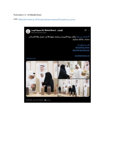 Publication: X – Al Wahda News Link: # ةركتبم ةيئاذغ تاجتنم ىلإ رمتلا ةاون ليوحت يف اهدوهجب ديشيو يعورزلما ةرون يقتلي دياز_نب_نادمح..
