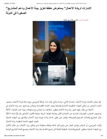 4/28/25, 3:17 PM “نطوﻟا ةدﯾرﺟ › ﺔﻟودﻟا ﻲﻓ ةرﯾﻐﺻﻟا ﻊﯾرﺎﺷﻣﻟا مﻋدو لﺎﻣﻋﻷا ﺔﺋﯾﺑ زﯾزﻌﺗ ططﺧ ضرﻌﺗﺳﯾ ”لﺎﻣﻋﻷا ةدﺎﯾرﻟ تارﺎﻣﻹا