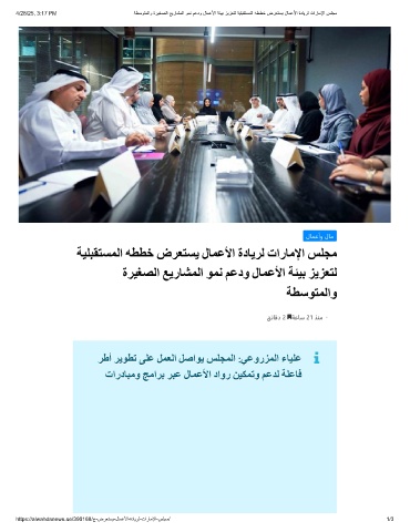 4/28/25, 3:17 PM ﺔطﺳوﺗﻣﻟاو ةرﯾﻐﺻﻟا ﻊﯾرﺎﺷﻣﻟا وﻣﻧ مﻋدو لﺎﻣﻋﻷا ﺔﺋﯾﺑ زﯾزﻌﺗﻟ ﺔﯾﻠﺑﻘﺗﺳﻣﻟا ﮫططﺧ ضرﻌﺗﺳﯾ لﺎﻣﻋﻷا ةدﺎﯾرﻟ تارﺎﻣﻹا سﻠﺟﻣ