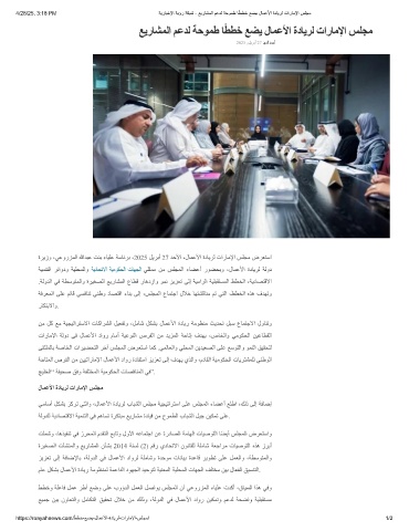 ةﺮﯾزو ،ﻲﻋورﺰﻤﻟا ﷲﺪﺒﻋ ﺖﻨﺑ ءﺎﯿﻠﻋ ﺔﺳﺎﺋﺮﺑ ،2025 ﻞﯾﺮﺑأ 27 ﺪﺣﻷا ،لﺎﻤﻋﻷا ةدﺎﯾﺮﻟ تارﺎﻣﻹا ﺲﻠﺠﻣ ضﺮﻌﺘﺳا