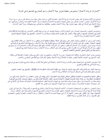 4/28/25, 3:18 PM "ﺔﻟودﻟا ﻲﻓ ةرﯾﻐﺻﻟا ﻊﯾرﺎﺷﻣﻟا مﻋدو لﺎﻣﻋﻷا ﺔﺋﯾﺑ زﯾزﻌﺗ ططﺧ ضرﻌﺗﺳﯾ "لﺎﻣﻋﻷا ةدﺎﯾرﻟ تارﺎﻣﻹا - Fana News