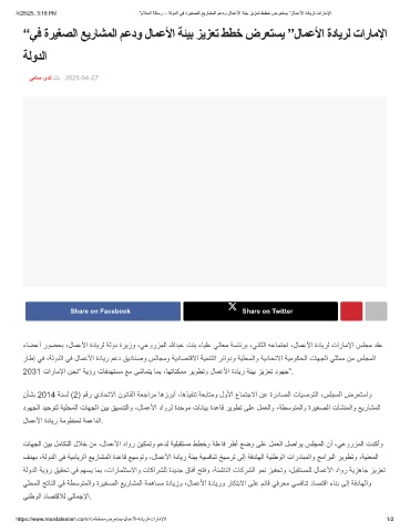 4/28/25, 3:18 PM “مﻼﺳﻟا ﺔﻟﺎﺳر – ﺔﻟودﻟا ﻲﻓ ةرﯾﻐﺻﻟا ﻊﯾرﺎﺷﻣﻟا مﻋدو لﺎﻣﻋﻷا ﺔﺋﯾﺑ زﯾزﻌﺗ ططﺧ ضرﻌﺗﺳﯾ ”لﺎﻣﻋﻷا ةدﺎﯾرﻟ تارﺎﻣﻹا