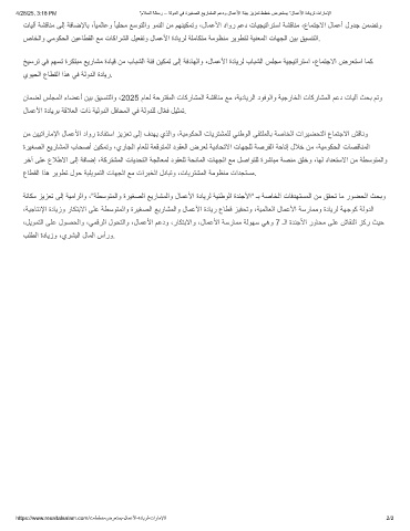 4/28/25, 3:18 PM “مﻼﺳﻟا ﺔﻟﺎﺳر – ﺔﻟودﻟا ﻲﻓ ةرﯾﻐﺻﻟا ﻊﯾرﺎﺷﻣﻟا مﻋدو لﺎﻣﻋﻷا ﺔﺋﯾﺑ زﯾزﻌﺗ ططﺧ ضرﻌﺗﺳﯾ ”لﺎﻣﻋﻷا ةدﺎﯾرﻟ تارﺎﻣﻹا