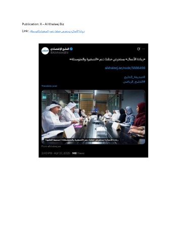Publication: X – Al Khaleej Biz Link: «ةطسوتلماو ةريغصلا« معد ططخ ضرعتسي »لامعلأا ةداير»