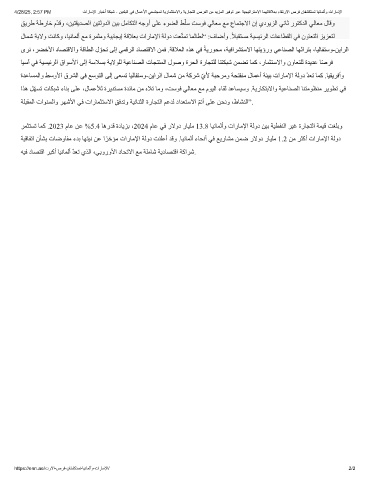 لﺎﻤﺷ ﺔﯾﻻو ﺖﻧﺎﻛو ،ﺎﯿﻧﺎﻤﻟأ ﻊﻣ ةﺮﻤﺜﻣو ﺔﯿﺑﺎﺠﯾإ ﺔﻗﻼﻌﺑ تارﺎﻣﻹا ﺔﻟود ﺖﻌّﺘﻤﺗ ﺎﻤﻟﺎﻄﻟ“ :فﺎﺿأو .ًﻼﺒﻘﺘﺴﻣ ﺔﯿﺴﯿﺋﺮﻟا تﺎﻋﺎﻄﻘﻟا ﻲﻓ نوﺎﻌﺘﻟا ﺰﯾﺰﻌﺘﻟ