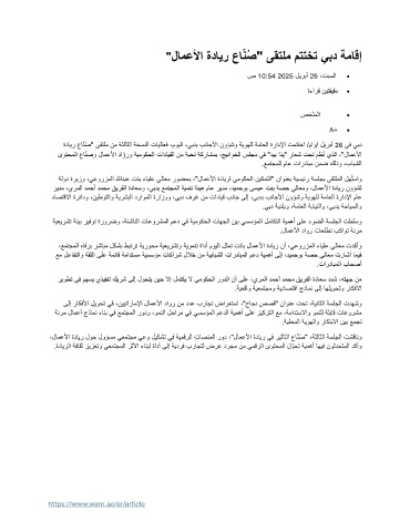 ىوتحملا عاّنصو لامعلأا دا ّ ورو ةيموكحلا تادايقلا نم ةبخن ةكراشمب ،جيناوخلا سلجم يف "ديب اًدي" راعش تحت مظُن يذلا ،"لامعلأا