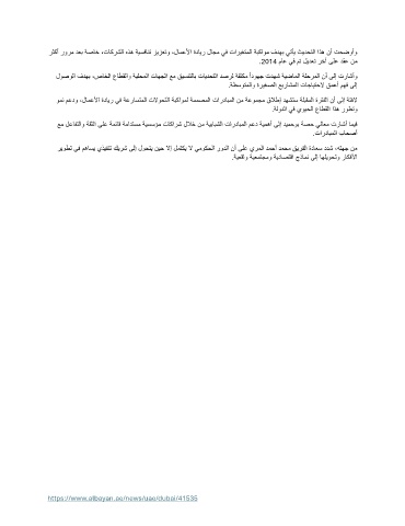 ريوطت يف مهاسي يذيفنت كيرش ىلإ لوحتي نيح لاإ لمتكي لا يموكحلا رودلا نأ ىلع يرملا دمحأ دمحم قيرفلا ةداعس ددش ،هتهج نم