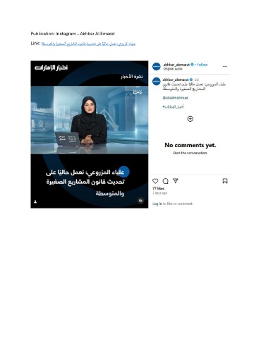 Publication: Instagram – Akhbar Al Emarat ً Link: ةطسوتلماو ةريغصلا عيراشلما نوناق ثيدحت ىلع ايلاح لمعن :يعورزلما ءايلع