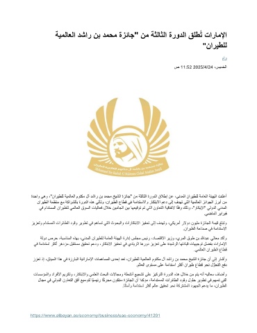 ة دحاو يهو ،"ناريطلل ةيملاعلا موتكم لآ دشار نب دمحم خيشلا ةزئاج" نم ةثلاثلا ةرودلا قلاطإ نع ،يندملا ناريطلل ةماعلا ةئيهلا تنلعأ
