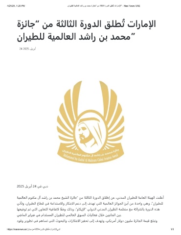 4/25/25, 1:20 PM نارﯾطﻠﻟ ﺔﯾﻣﻟﺎﻌﻟا دﺷار نﺑ دﻣﺣﻣ ةزﺋﺎﺟ" نﻣ ﺔﺛﻟﺎﺛﻟا ةرودﻟا ﻖﻠطُﺗ تارﺎﻣﻹا" - Nas News UAE