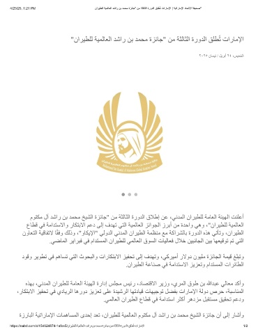 4/25/25, 1:21 PM نارﯾطﻠﻟ ﺔﯾﻣﻟﺎﻌﻟا دﺷار نﺑ دﻣﺣﻣ ةزﺋﺎﺟ" نﻣ ﺔﺛﻟﺎﺛﻟا ةرودﻟا ﻖﻠطُﺗ تارﺎﻣﻹا | ﺔﯾﺗارﺎﻣﻹا دﺎﺣﺗﻻا ﺔﻔﯾﺣﺻ"
