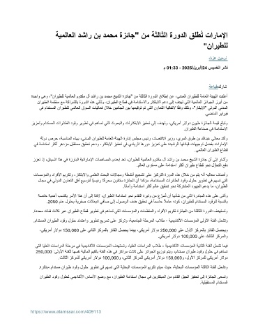 ة دحاو يهو ،"ناريطلل ةيملاعلا موتكم لآ دشار نب دمحم خيشلا ةزئاج" نم ةثلاثلا ةرودلا قلاطإ نع ،يندملا ناريطلل ةماعلا ةئيهلا تنلعأ