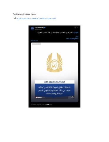 Publication: X – Wam News Link: # ناريطلل ةيلماعلا دشار نب دمحم ةزئاج" نم ةثلاثلا ةرودلا قلطت تاراملإا"