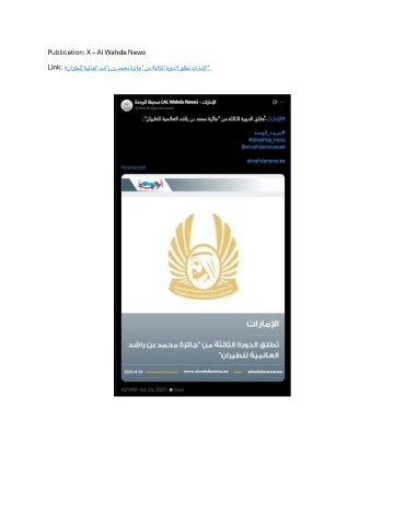 Publication: X – Al Wahda News ُ Link: # ناريطلل ةيلماعلا دشار نب دمحم ةزئاج" نم ةثلاثلا ةرودلا قلطت تاراملإا"..