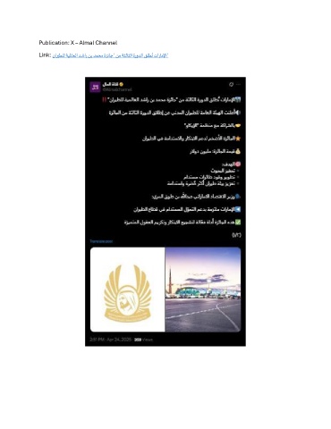 Publication: X – Almal Channel ُ Link: ناريطلل ةيلماعلا دشار نب دمحم ةزئاج" نم ةثلاثلا ةرودلا قلطت تاراملإا"
