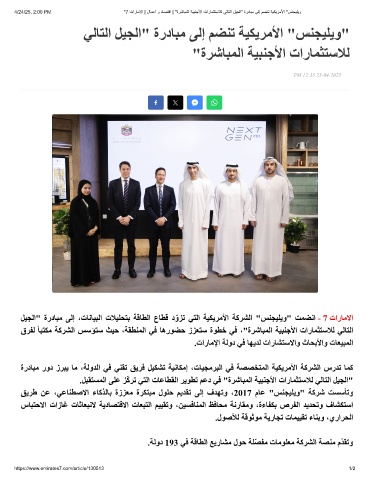 4/24/25, 2:00 PM "7 تارﺎﻣﻻا | لﺎﻣﻋا و دﺎﺻﺗﻗا | "ةرﺷﺎﺑﻣﻟا ﺔﯾﺑﻧﺟﻷا تارﺎﻣﺛﺗﺳﻼﻟ ﻲﻟﺎﺗﻟا لﯾﺟﻟا" ةردﺎﺑﻣ ﻰﻟإ مﺿﻧﺗ ﺔﯾﻛﯾرﻣﻷا "سﻧﺟﯾﻠﯾو