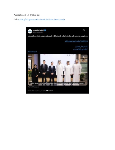 Publication: X – Al Khaleej Biz ً Link: «تاراملإا يف ابتكم حتتفتو »ةيبنجلأا تارامثتسلال يلاتلا ليجلا« ىلإ مضنت »سنجيليو