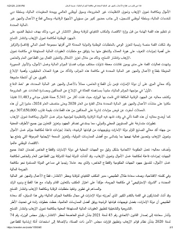 لاوﻣﻷا ﻞسﻏ مﺋارﺟ ﺔحﻓﺎكمﻟ ﺔﻠﻋﺎﻓ تاءارﺟإ ذﺎخﺗﺎب ،ةديﺷرﻟا ﺎﻬﺗدﺎيق نﻣ تﺎﻬيﺟوتبو تارﺎﻣﻹا ﺔﻟود مازتﻟا ﻎيﺎصﻟا ﻲﻟﺎﻌﻣ دﻛأ ﻪتﻬﺟ نﻣ