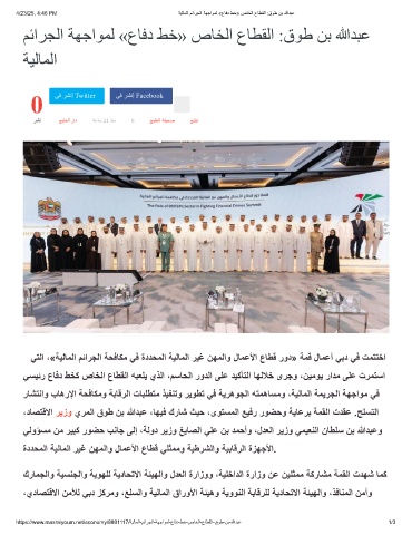 4/23/25, 4:46 PM ﺔﯾﻟﺎﻣﻟا مﺋارﺟﻟا ﺔﮭﺟاوﻣﻟ «عﺎﻓد طﺧ» صﺎﺧﻟا عﺎطﻘﻟا :قوط نﺑ ﷲدﺑﻋ