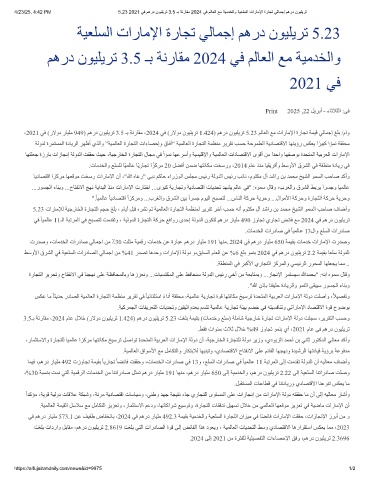 3.5ـﺑ ﺔﻧرﺎﻘﻣ ،2024 مﺎﻋ لﻼﺧ (رﻻود نﻮﯿﻠﯾﺮﺗ 1.424) ﻢھرد نﻮﯿﻠﯾﺮﺗ 5.23 ﺖﻐﻠﺑ ﺔﻤﯿﻘﺑ (تﺎﻣﺪﺧو ﻊﻠﺳ) ﺔﻠﻣﺎﺷ ﺔﯿﺟرﺎﺧ ةرﺎﺠﺗ تارﺎﻣﻹا ﺔﻟود ﺖﻠﺠﺳ ،ﺮﯾﺮﻘﺘﻟا ﺐﺴﺣو