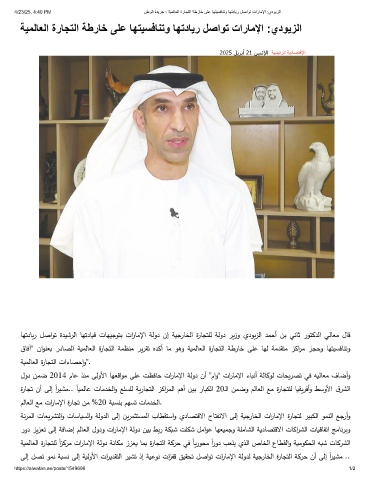 ﺎﻬﺗدﺎير ﻞﺻاوﺗ ةديﺷرﻟا ﺎﻬﺗدﺎيق تﺎﻬيﺟوتﺑ تارﺎﻣﻹا ﺔﻟود نإ ﺔيﺟرﺎخﻟا ةرﺎجتﻠﻟ ﺔﻟود ريزو يدويزﻟا دمﺣأ نﺑ ﻲﻧﺎﺛ روتكدﻟا ﻲﻟﺎﻌﻣ لﺎﻗ