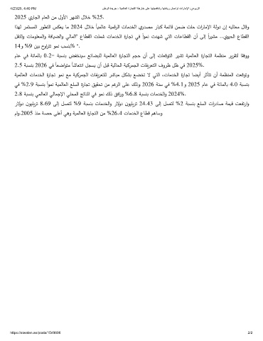 ﻲﻓ %2.9 ﺔبسنﺑ ً اومﻧ ﺔيمﻟﺎﻌﻟا ﻊﻠسﻟا ةرﺎجﺗ قيﻘحﺗ نﻣ مﻏرﻟا ﻰﻠﻋ كﻟذو 2026 ﺔنﺳ ﻲﻓ %4.1و 2025 مﺎﻋ ﻲﻓ ﺔﺋﺎمﻟﺎب 4.0 ﺔبسنﺑ
