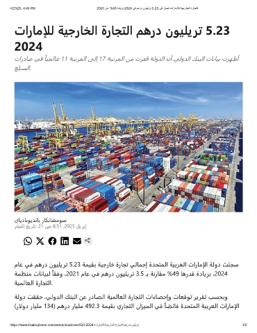4/23/25, 4:40 PM 2021 نﻋ %49 ةدﺎﯾزﺑ 2024 ﻲﻓ مھرد نوﯾﻠﯾرﺗ 5.23 ﻰﻟإ لﺻﺗ تارﺎﻣﻺﻟ ﺔﯾﺟرﺎﺧﻟا ةرﺎﺟﺗﻟا