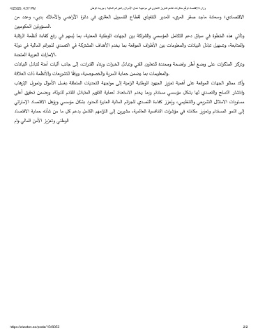 4/23/25, 4:37 PM نطوﻟا ةدﯾرﺟ › ﺔﯾﻟﺎﻣﻟا مﺋارﺟﻟاو لاوﻣﻷا لﺳﻏ ﺔﮭﺟاوﻣ ﻲﻓ نوﺎﻌﺗﻟا زﯾزﻌﺗﻟ مھﺎﻔﺗ تارﻛذﻣ ﻊ ّ ﻗوﺗ دﺎﺻﺗﻗﻻا ةرازو