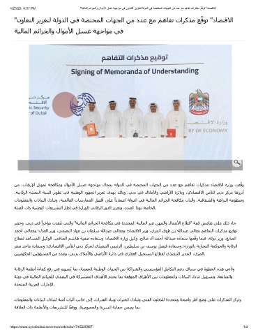 4/23/25, 4:37 PM "ﺔﯾﻟﺎﻣﻟا مﺋارﺟﻟاو لاوﻣﻷا لﺳﻏ ﺔﮭﺟاوﻣ ﻲﻓ نوﺎﻌﺗﻟا زﯾزﻌﺗﻟ ﺔﻟودﻟا ﻲﻓ ﺔﺻﺗﺧﻣﻟا تﺎﮭﺟﻟا نﻣ ددﻋ ﻊﻣ مھﺎﻔﺗ تارﻛذﻣ ﻊ ّ ﻗوﺗ "دﺎﺻﺗﻗﻻا