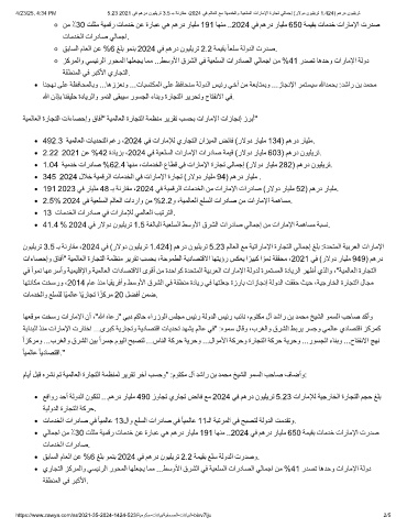 نوﯾﻠﯾرﺗ 3.5 ـﺑ ﺔﻧرﺎﻘﻣ ،2024 ﻲﻓ (رﻻود نوﯾﻠﯾرﺗ 1.424) مھرد نوﯾﻠﯾرﺗ 5.23 مﻟﺎﻌﻟا ﻊﻣ ﺔﯾﺗارﺎﻣﻹا ةرﺎﺟﺗﻟا ﻲﻟﺎﻣﺟإ ﻎﻠﺑ :ةدﺣﺗﻣﻟا ﺔﯾﺑرﻌﻟا تارﺎﻣﻹا