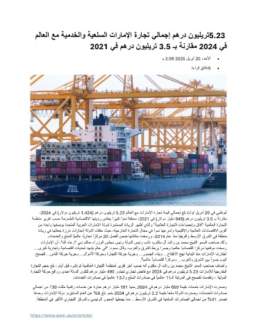 ، 2024 يف )رلاود نويليرت 1.424 ( مهرد نويليرت 5.23 ملاعلا عم تاراملإا ةراجت ةميق يلامجإ غلب /ماو/ ليربأ 20 يف يبظوبأ