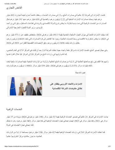 ﻢھرد رﺎﯿﻠﻣ 573.1 ﻦﻋ ﻒﯿﻔط ضﺎﻔﺨﻧﺎﺑ ،2024 ﻲﻓ ﻢھرد رﺎﯿﻠﻣ 492.3 ﺔﻤﯿﻘﺑ ﺔﯿﻣﺪﺨﻟاو ﺔﯿﻌﻠﺴﻟا ةرﺎﺠﺘﻟا ناﺰﯿﻣ ﻲﻓ ً ﺎﻀﺋﺎﻓ تارﺎﻣﻹا ﺖﻠﺠﺳ ﺎﻤﻛ