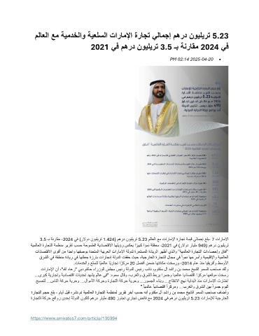 3.5 ـب ةنراقم ، 2024 يف )رلاود نويليرت 1.424 ( مهرد نويليرت 5.23 ملاعلا عم تاراملإا ةراجت ةميق يلامجإ غلب 7 - تاراملاا