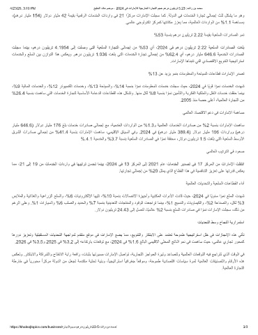 رﺎﯾﻠﻣ 646.6) رﻻود رﺎﯾﻠﻣ 176 ﻎﻠﺑ تﺎﻣدﺧ تاردﺎﺻ ﻲﻟﺎﻣﺟإ ﻊﻣ ،ﺔﯾﻣدﺧﻟا تادراوﻟا نﻣ %1.3و ﺔﯾﻣﻟﺎﻌﻟا تﺎﻣدﺧﻟا تاردﺎﺻ نﻣ %2 ﺔﺑﺳﻧﺑ تارﺎﻣﻹا تﻣھﺎﺳ