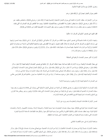 ﻦﻋ ﻒﯿﻔط ضﺎﻔﺨﻧﺎﺑ ،2024 ﻲﻓ ﻢھرد رﺎﯿﻠﻣ 492.3 ﺔﻤﯿﻘﺑ ﺔﯿﻣﺪﺨﻟاو ﺔﯿﻌﻠﺴﻟا ةرﺎﺠﺘﻟا ناﺰﯿﻣ ﻲﻓ ﺎًﻀﺋﺎﻓ تارﺎﻣﻹا ﺖﻘﻘﺣ ،تازﺎﺠﻧﻹا زﺮﺑأ ﻦﻣ