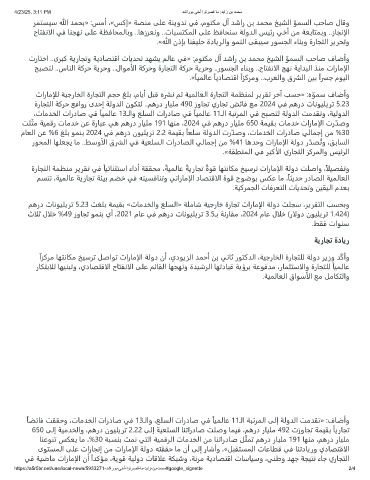 ًاﺰﻛﺮﻣ ﺎﻬﺘﻧﺎﻜﻣ ﺦﻴﺳﺮﺗ ﻞﺻاﻮﺗ تارﺎﻣإلا ﺔﻟود نأ ،يدﻮﻳﺰﻟا ﺪﻤﺣأ ﻦﺑ ﻲﻧﺎﺛ رﻮﺘﻛﺪﻟا ،ﺔﻴﺟرﺎﺨﻟا ةرﺎﺠﺘﻠﻟ ﺔﻟود ﺮﻳزو ﺪّﻛأو