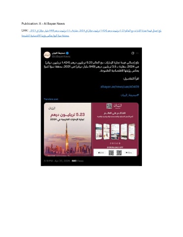 Publication: X – Al Bayan News Link: ،2021 يف )رلاود رايلم 949( مهرد نويليرت 3.5 ـب ةنراقم ،2024 يف )رلاود نويليرت 1.424( مهرد نويليرت 5.23 ملاعلا عم تاراملإا ةراجت ةميق يلامجإ غلب ً ً ةحومطلا ةيداصتقلاا اهتيؤر سكعي اريبك اومن ةققحم.