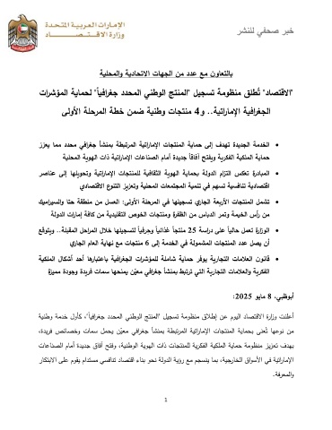 ﺔﯿﻨطو ﺔﻤدﺨ لوﺄﻛ ، " ً ﺎﯿﻓارﻐﺠ ددﺤﻤﻟا ﻲﻨطوﻟا ﺞﺘﻨﻤﻟا " لﯿﺠﺴﺘ ﺔﻤوظﻨﻤ قﻼطإ نﻋ موﯿﻟا دﺎﺼﺘﻗﻻا ةرازو تﻨﻠﻋأ