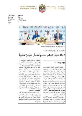 Publication: Al Etihad Country: UAE Circulation: 109,640 Date: 28 May 2025 Page: 18
