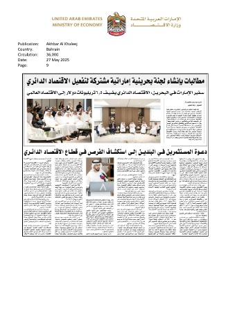Publication: Akhbar Al Khaleej Country: Bahrain Circulation: 36,000 Date: 27 May 2025 Page: 9