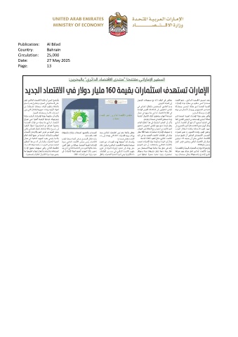 Publication: Al Bilad Country: Bahrain Circulation: 25,000 Date: 27 May 2025 Page: 13