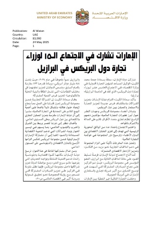 Publication: Al Watan Country: UAE Circulation: 83,000 Date: 24 May 2025 Page: 1
