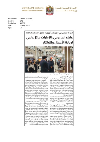 Publication: Emarat Al Youm Country: UAE Circulation: 80,000 Date: 22 May 2025 Page: 13