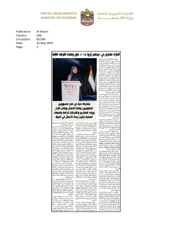 Publication: Al Watan Country: UAE Circulation: 83,000 Date: 22 May 2025 Page: 3